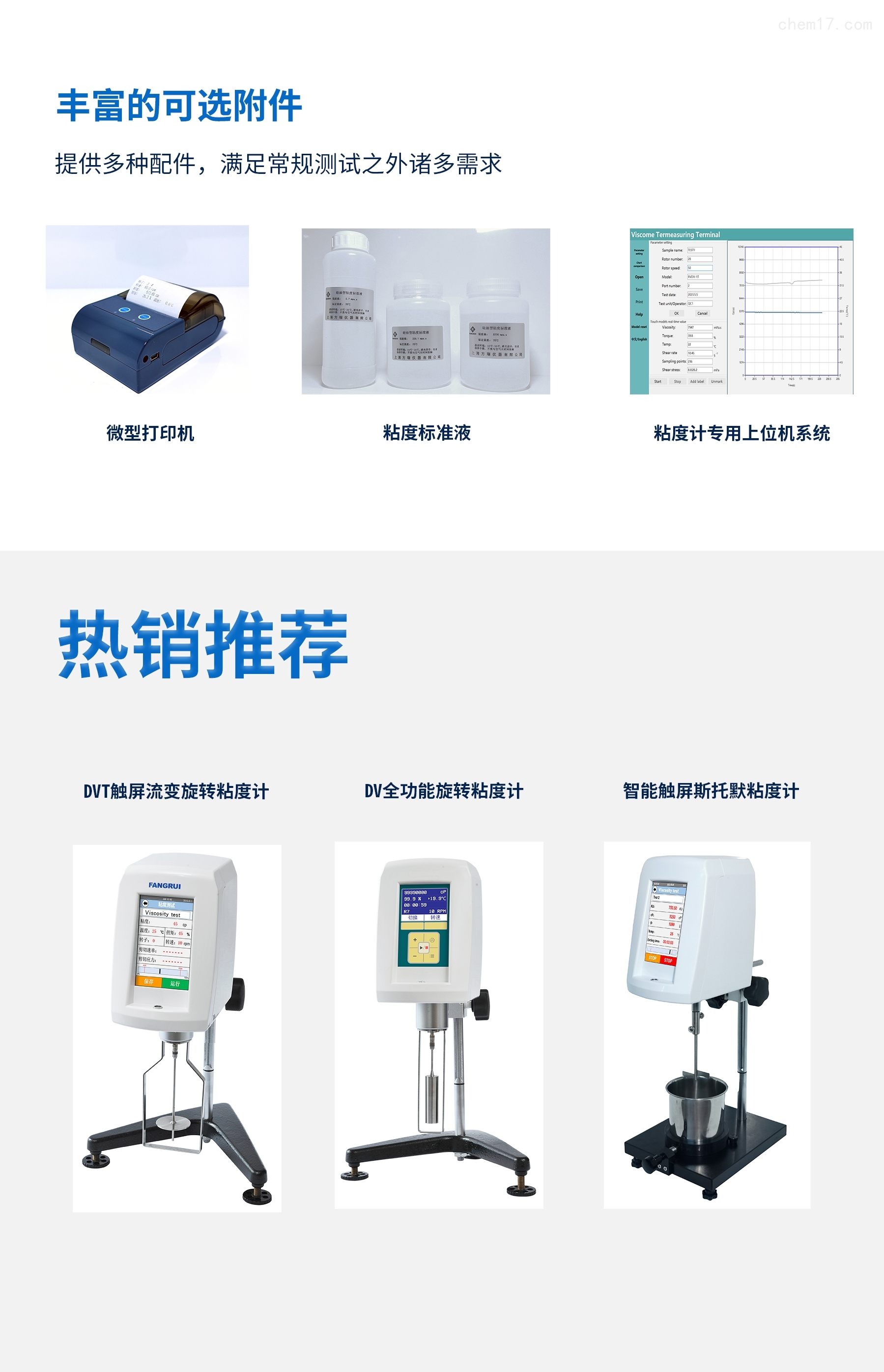 有多个配置,粘度计测量范围:1-2000; 3-160万, 10-20万, 50-200万;100-400万, 400-1600万等,测量准确、重复性好。